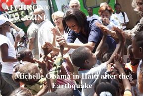 Michelle Obama, former First Lady of the United States, aids people in Haiti after the earthquake.